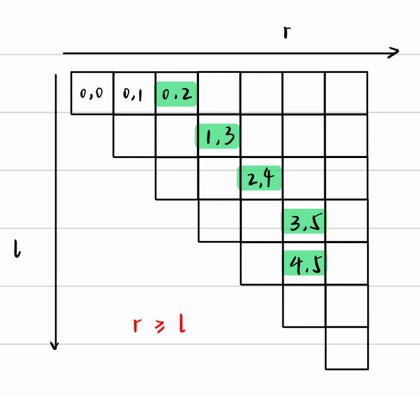 观察这张图,我们用二维表来记录不同的(l,r)所对应的case